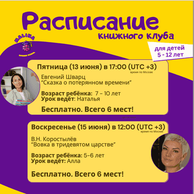 Книжный клуб на русском онлайн для детей 5-12 лет.